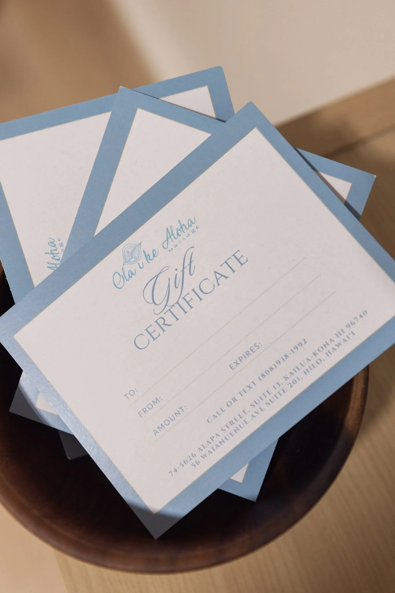 Give someone you love the opportunity to slow down, release tension, and reconnect with themselves. Ola I Ke Aloha Massage gift certificates are the perfect way to share rest, care, and intention with someone who needs it